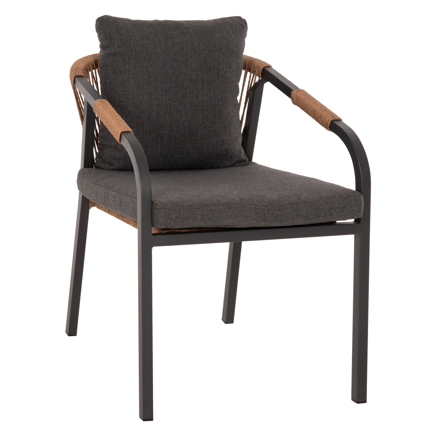 Η πολυθρόνα αλουμινίου MAERLY σε ΑΝΘΡΑΚΙ χρώμα είναι τόσο για επαγγελματική χρήση όσο και για το σπίτι. Ουσιαστικά δεν έχει ξεχωριστά μπράτσα αλλά η πλάτη είναι ενιαία με τα μπράτσα αγκαλιάζοντας το σώμα. Πρόκειται για μια πανέμορφη πολυθρόνα με χαμηλή πλάτη και κάθισμα από συνθετικό σχοινί (P.E. Rattan twisted) άριστης ποιότητας. Το ιδιαίτερο χαρακτηριστικό αυτής της πολυθρόνας είναι ότι διαθέτει αναπαυτικά μαξιλάρια τόσο στο κάθισμα, όσο και στην πλάτη, επίσης σε ΑΝΘΡΑΚΙ χρώμα.