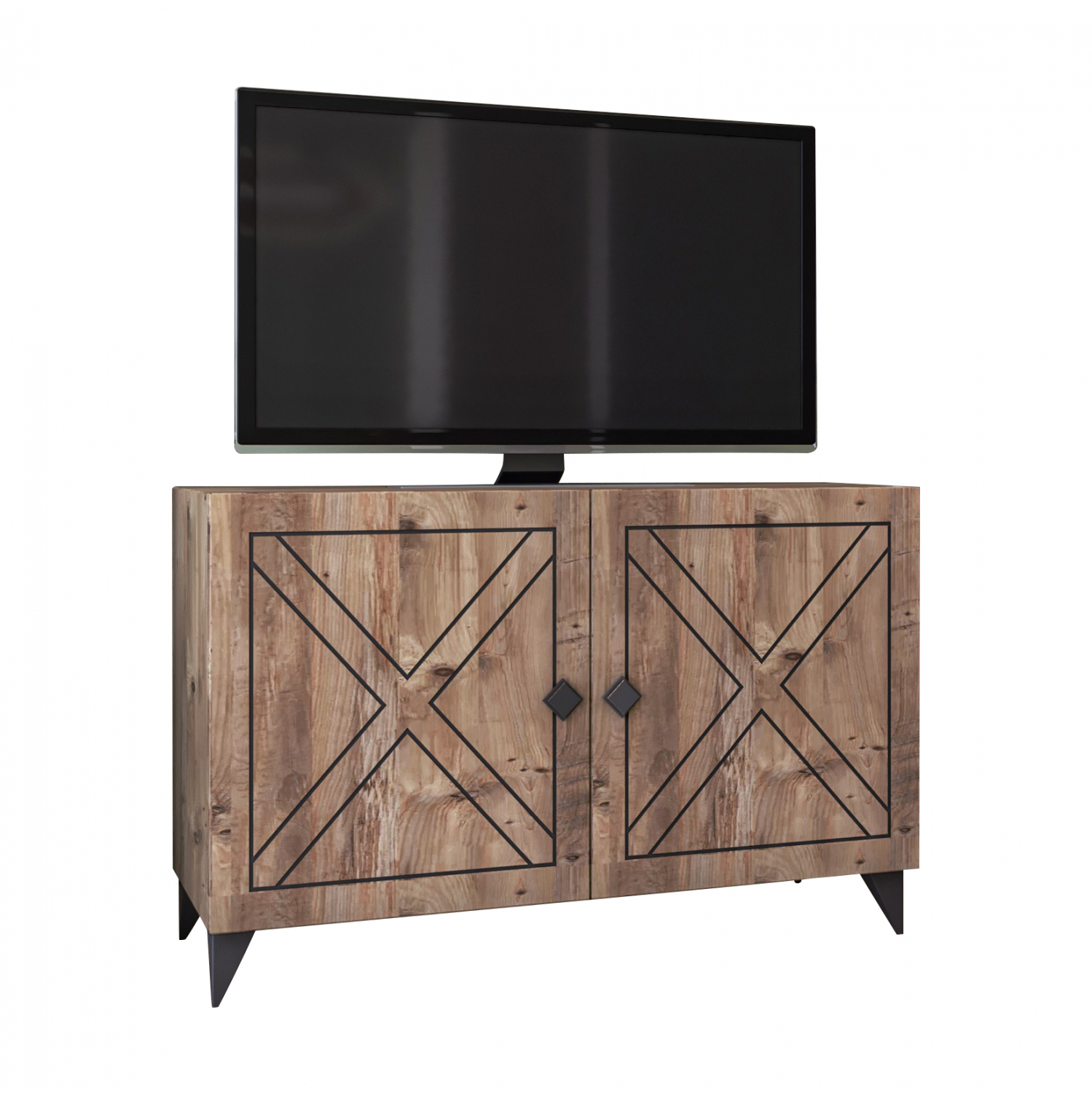 Μοντέρνο έπιπλο τηλεόρασης με λιτό σχεδιασμό, κατασκευασμένο από ανθεκτική μελαμίνη πάχους 18 χιλιοστών υψηλής ποιότητας σε καρυδί απόχρωση.