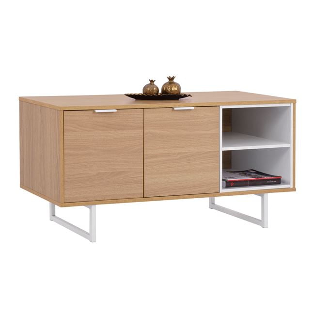 Έπιπλο τηλεόρασης από τη σειρά ANTHEIA, σε φυσική και λευκή απόχρωση με μεταλλικά πόδια.
