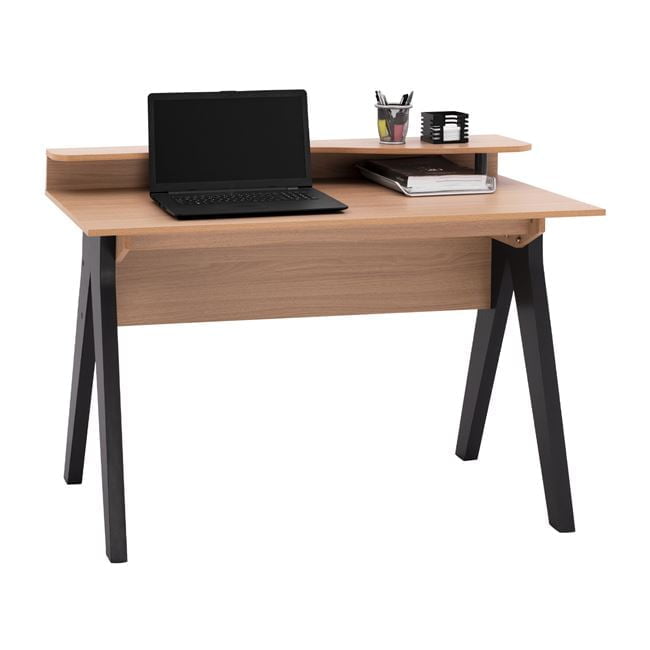 από ανθεκτική μελαμίνη σε φυσική απόχρωση με μεταλλικά μαύρα πόδια.