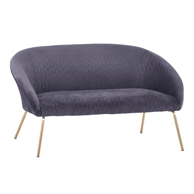 Διθέσιος καναπές JOYCE με ύφασμα βελούδο σε γκρι απόχρωση και μεταλλικά πόδια σε χρυσή απόχρωση.