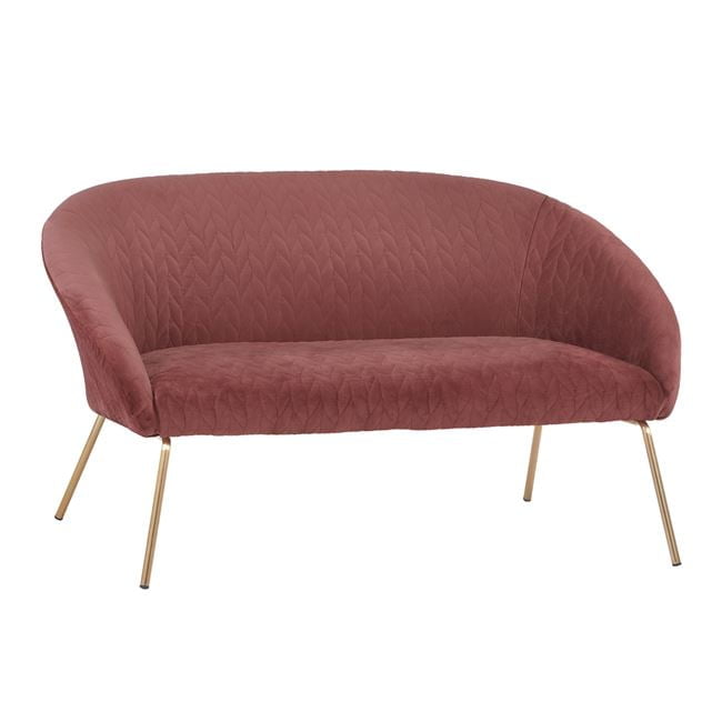 Διθέσιος καναπές JOYCE με ύφασμα βελούδο σε απόχρωση σάπιου μήλου και μεταλλικά πόδια σε χρυσή απόχρωση.