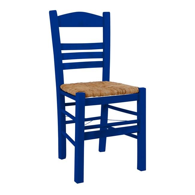 Καρέκλα παραδοσιακή καφενείου επιλοχία από μασίφ ξύλο φουρνιστής οξιάς εμποτισμού μπλε και ψάθα.