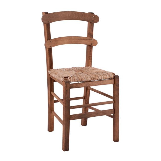 Καρέκλα καφενείου καρφωτή από μασίφ ξύλο φουρνιστής οξιάς εμποτισμού καρυδί και ψάθα.