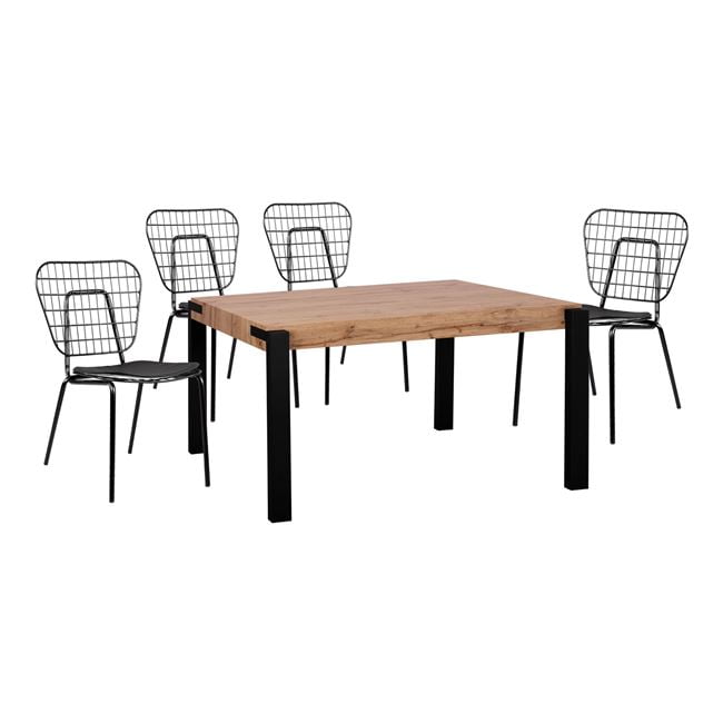 Ένα τραπέζι τραπεζαρίας με μεταλλικά πόδια σε μαύρη απόχρωση