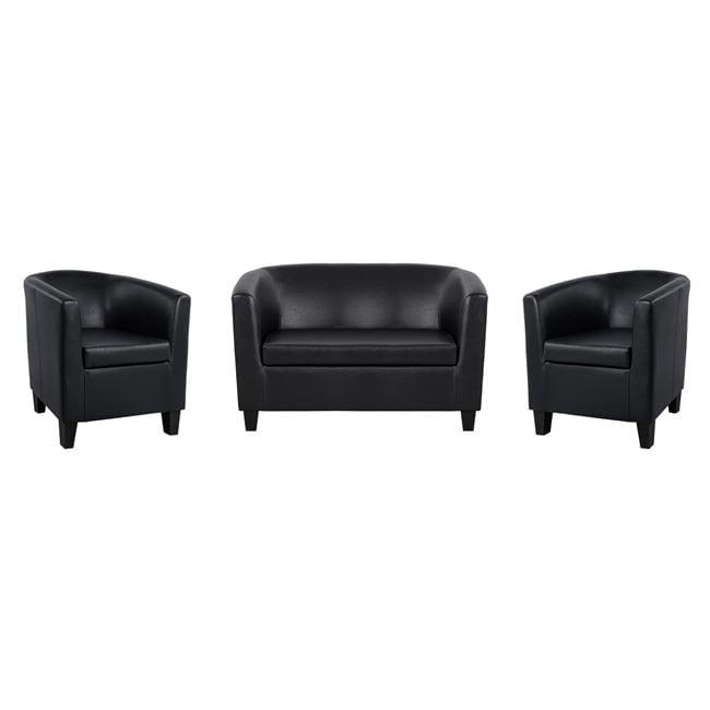 Σετ σαλόνι 3 τεμάχια PIERRE επενδυμένο με υψηλής ποιότητας τεχνόδερμα σε μαύρη απόχρωση.