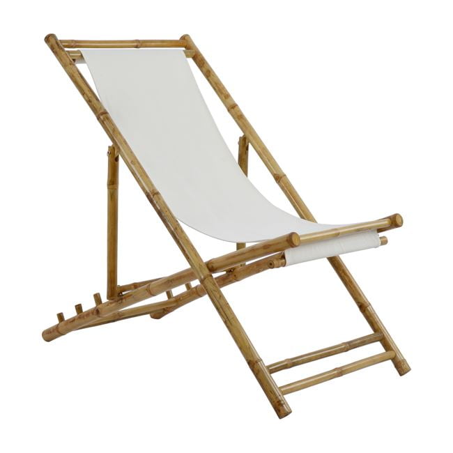 Σεζλόνγκ από σκελετό Bamboo και πανί σε απόχρωση εκρού.