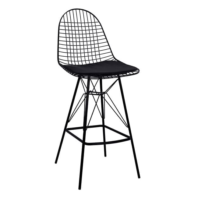 Το σκαμπό είναι κατασκευασμένο από μέταλλο σε μαύρη απόχρωση, και διαθέτει μαξιλαράκι από τεχνόδερμα σε μαύρο χρώμα.