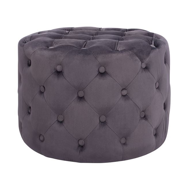 ΣΚΑΜΠΟ KASSIE ΓΚΡΙ ΒΕΛΟΥΔΟ ΤΥΠΟΥ CHESTERFIELD HM8406.01 Φ60×43Υ εκ.