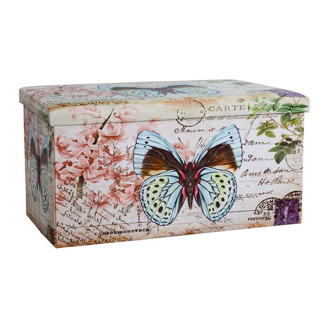 Σκαμπώ πτυσσόμενο με αποθηκευτικό χώρο επενδυμένο με τεχνόδερμα με σχέδιο Butterfly.