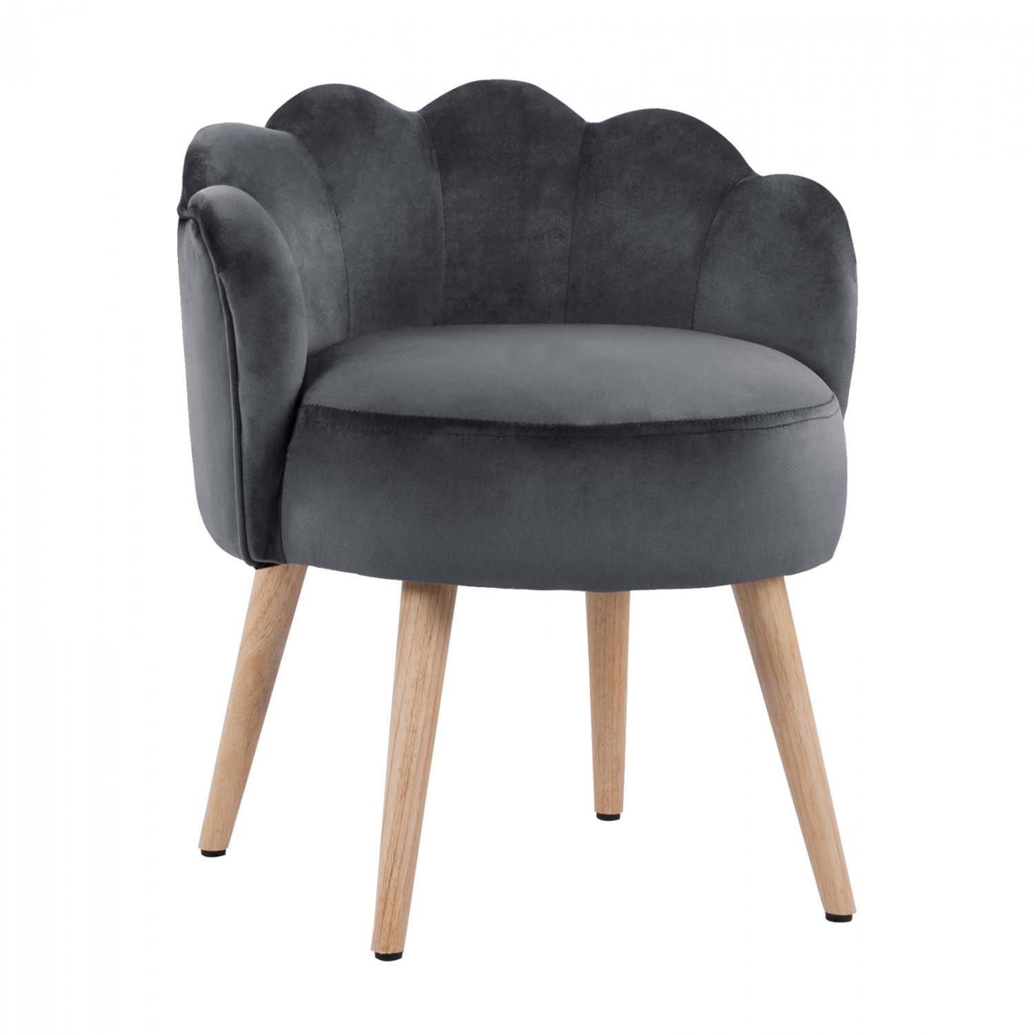Σκαμπό με πλάτη ELISE από βελούδο σε γκρι απόχρωση με ξύλινα πόδια σε φυσική χρώμα.